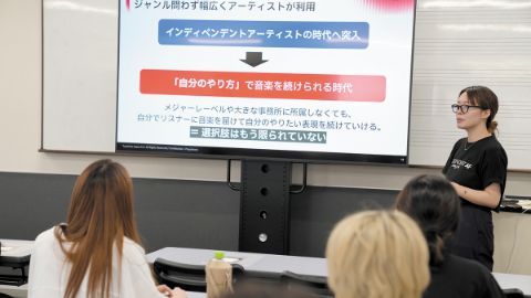 音楽をビジネスにするために、会社経営やマーケティングなど幅広い知識を学びます。