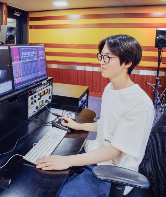 楽曲制作に必要な知識(作編曲法・作詞)・技術(DAW操作・レコーディング・音声編集・ミキシングなど)を学びます。 オリジナルの楽曲及び企業からオーダーされる楽曲の制作を通して、 自身のスタイルを表現できる音楽クリエーターを目指します。