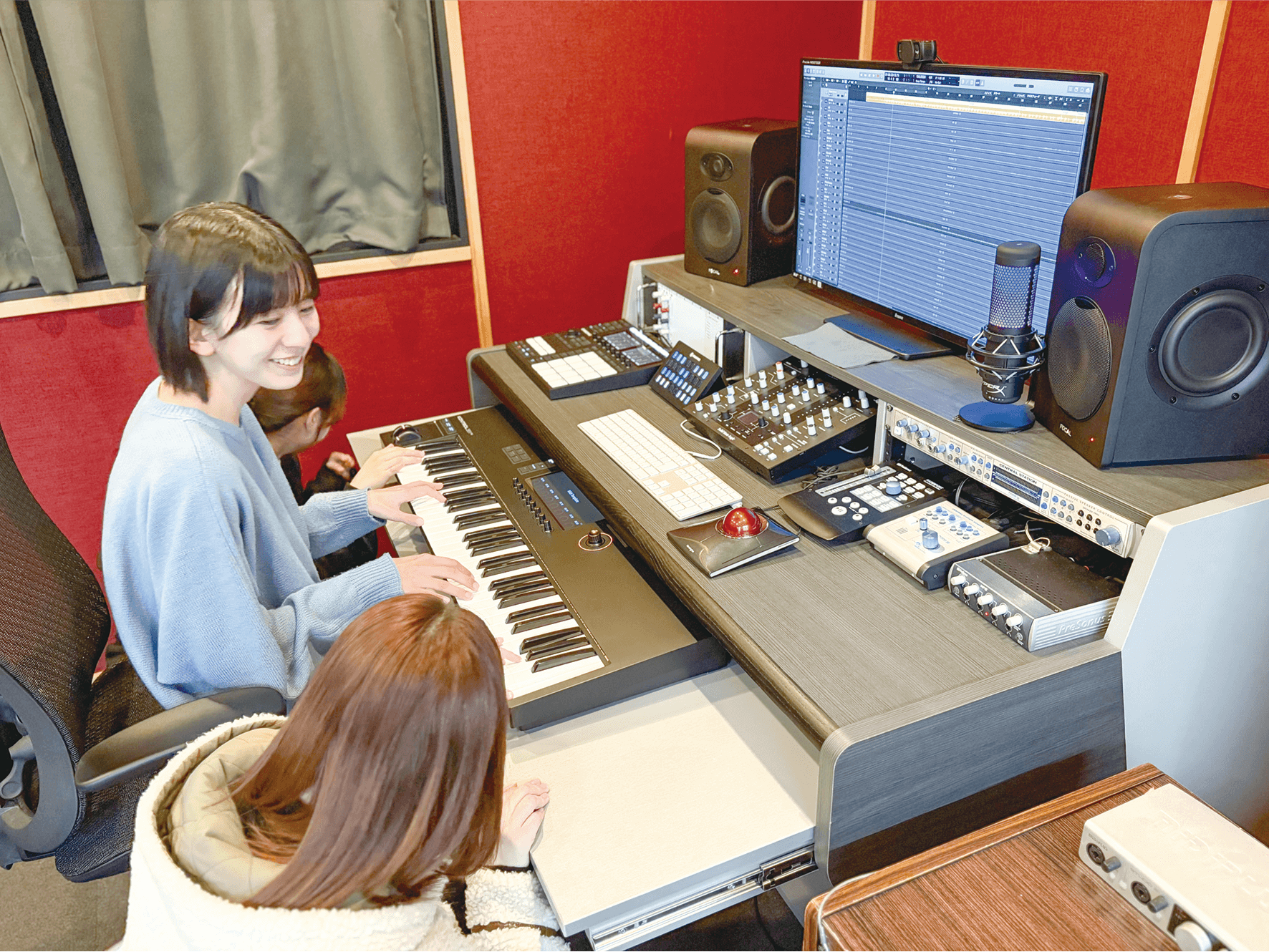 選択したメインパートでの演奏技術や歌唱技術だけでなく、楽曲Mix方法やプロデュースまで広く学びます。