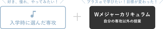入学時に選択した自分の専攻以外の授業でも、将来の目標に合わせて履修する授業を増やすことができるのが『Wメジャーカリキュラム』。