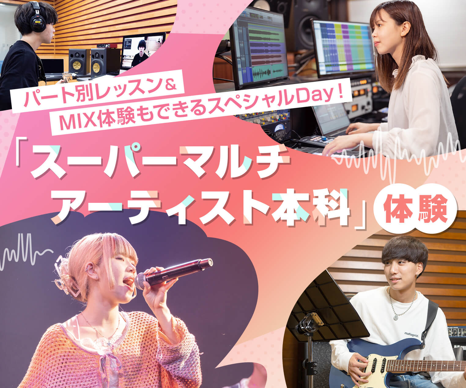 #ドリキャン2025ドリームオープンキャンパスランチ付き!好きな分野を深く学べる1日。本気の一歩を踏み出そう! 11/16(日) イベント情報 申し込む TSM学園祭2025 #Be Fun!~これがTSMのReal~ 10/25(土) 10/26(日) イベント情報 \まだ間に合う!/好きなことを仕事にしよう!TSM専門課程・高等課程オープンキャンパス 11/1(土) 11/2(日) 11/9(日) …他 イベント情報 申し込む 初めての方にオススメ!TSMオープンキャンパス 11/1(土) 11/2(日) 11/9(日) …他 イベント情報 申し込む 【高等課程】#ドリキャン2025ドリームオープンキャンパスランチ付き!好きな分野を深く学べる1日。本気の一歩を踏み出そう! 11/16(日) イベント情報 申し込む 【中学生のための!】オープンキャンパス体験DAY 11/2(日) 12/14(日) イベント情報 申し込む 1DAY チャレンジキャンプ 12/21(日) イベント情報 申し込む ヴォーカルレコーディング&プロデューサー体験在校生の歌を実際にレコーディングしてみよう! 11/16(日) イベント情報 申し込む 「歌ってみた」を録ろう! 機材・MIX方法まで丸わかり。 12/14(日) イベント情報 申し込む 「スーパーマルチアーティスト本科」体験 11/23(日) 11/30(日) イベント情報 ライブ・コンサート オペレーション体験音響・照明・ライブ制作から選んで体験しよう! 11/9(日) 11/16(日) イベント情報 申し込む ちょこっとオープンキャンパス-タイパ重視!気軽に参加したいという方へ★- 11/1(土) 11/2(日) 11/8(土) …他 イベント情報 申し込む K-POPスタッフを目指す方へ!音楽業界で使える韓国語講座 11/9(日) 12/7(日) イベント情報 申し込む アーティストグッズ制作体験<来校限定> 11/16(日) イベント情報 申し込む バックダンサーを目指す方向け!HIPHOPダブル体験 11/16(日) イベント情報 申し込む 某大手テーマパーク現役ダンサーと一緒に踊ろう!クリスマスソングでパレードダンス体験 12/14(日) イベント情報 申し込む