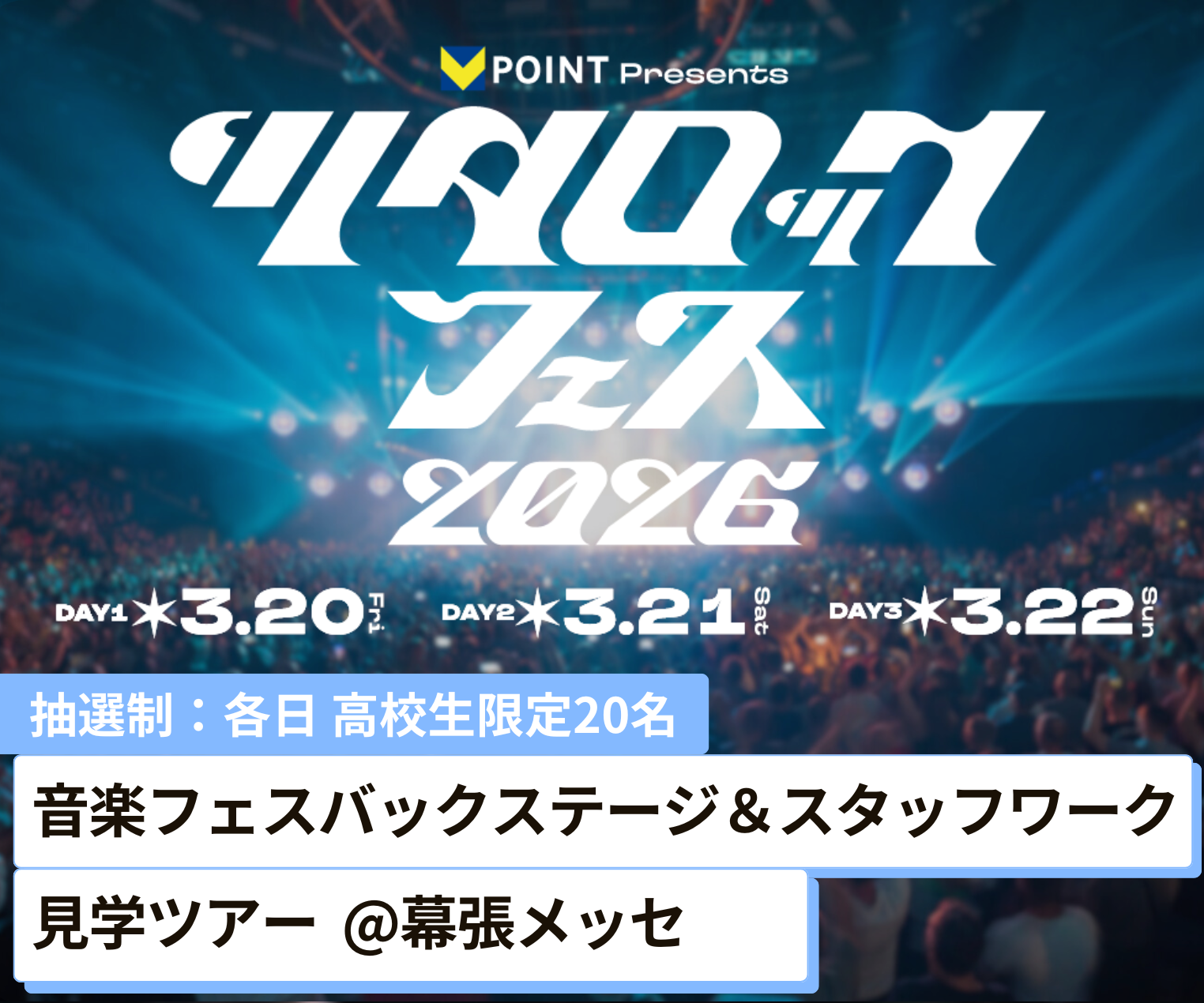 音楽フェスバックステージ&スタッフワーク見学ツアー@幕張メッセ3/20(金) 3/21(土) 3/22(日) …他